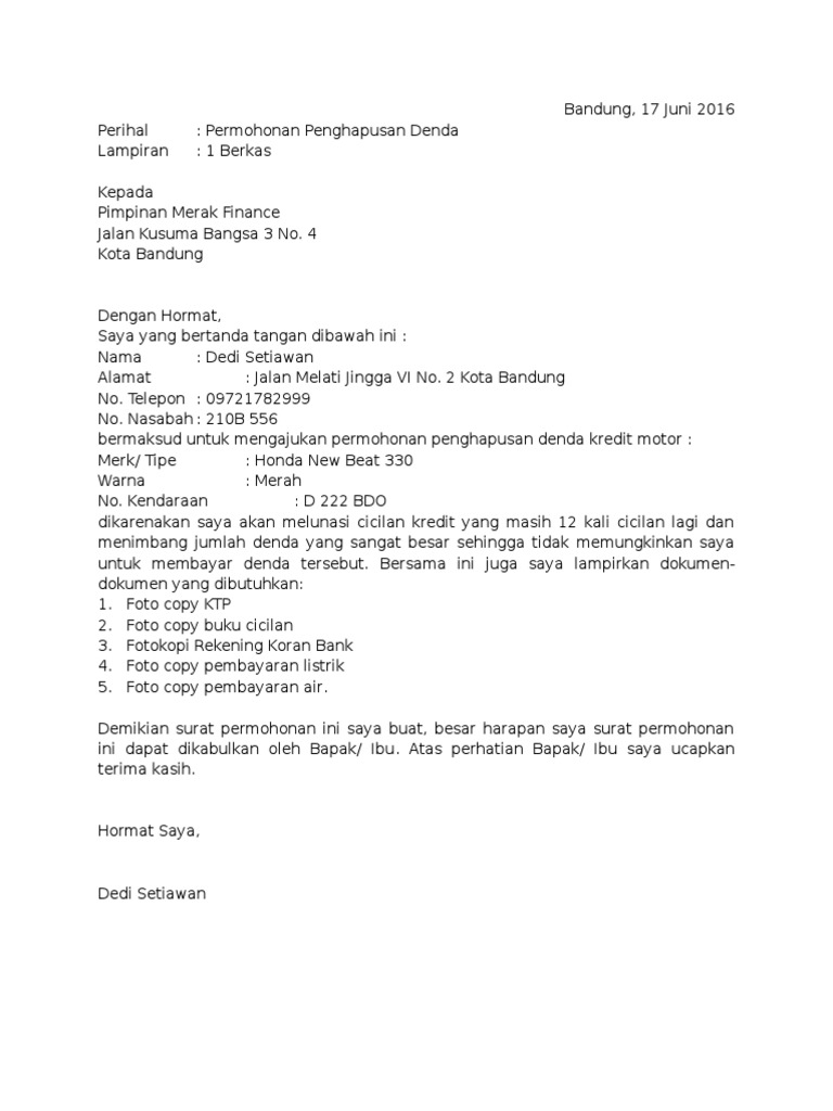 Download contoh surat permohonan keringanan pembayaran kartu kredit.